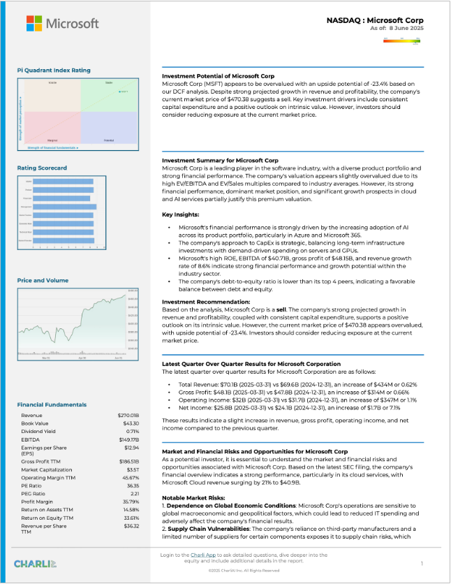 Get financials, investment scores and buy/sell indicators — all in one comprehensive 6+ page report featuring in-depth analysis, financial breakdowns, SWOT analysis and clear investment thesis.